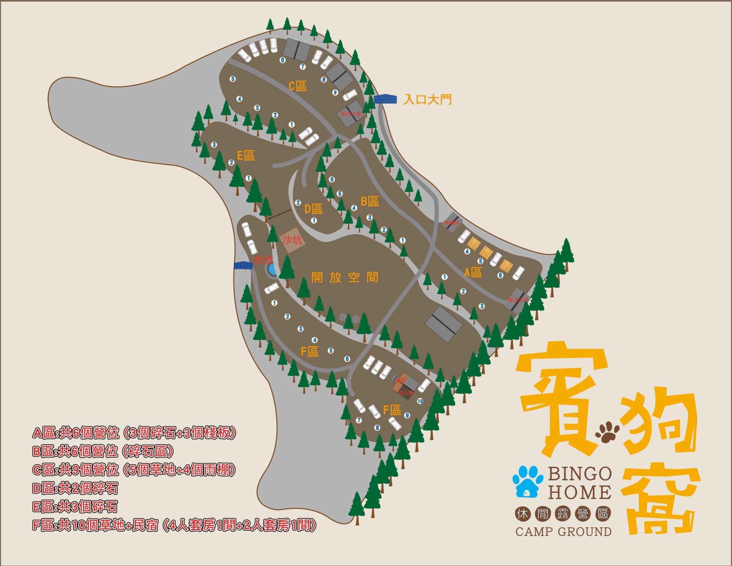 賓狗窩露營地營區分佈圖